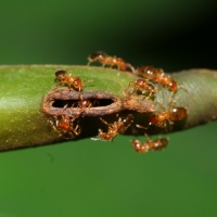 Sous les tropiques, certaines plantes fournissent le gîte et le couvert à des fourmis qui, en contrepartie, les protègent des herbivores. L'écologie et l'évolution de ces symbioses sont abordées à travers plusieurs aspects de leur fonctionnement, tels que la communication entre plante et fourmi, l'histoire comparée des populations des deux partenaires, et les flux trophiques au sein de la communauté symbiotique impliquant la plante, les fourmis et des champignons.